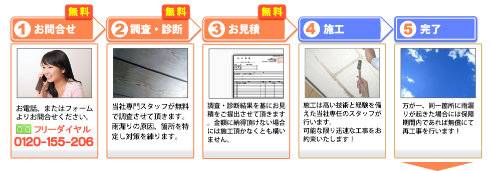 「雨漏りねっと」っではお問合せから施工まで迅速な対応をお約束します!雨漏り症状が出たら「雨漏りねっと」まで!