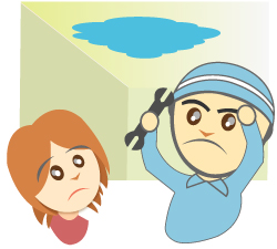 ・天井から水滴が落ちてくる。天井や壁に染みがある。